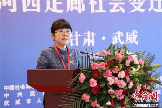 11日,“明清時期河西走廊社會變遷”學(xué)術(shù)研討會舉辦。圖為中國社科院古代史研究所黨委書記趙笑潔講話。 武威市新聞傳媒集團(tuán)供圖