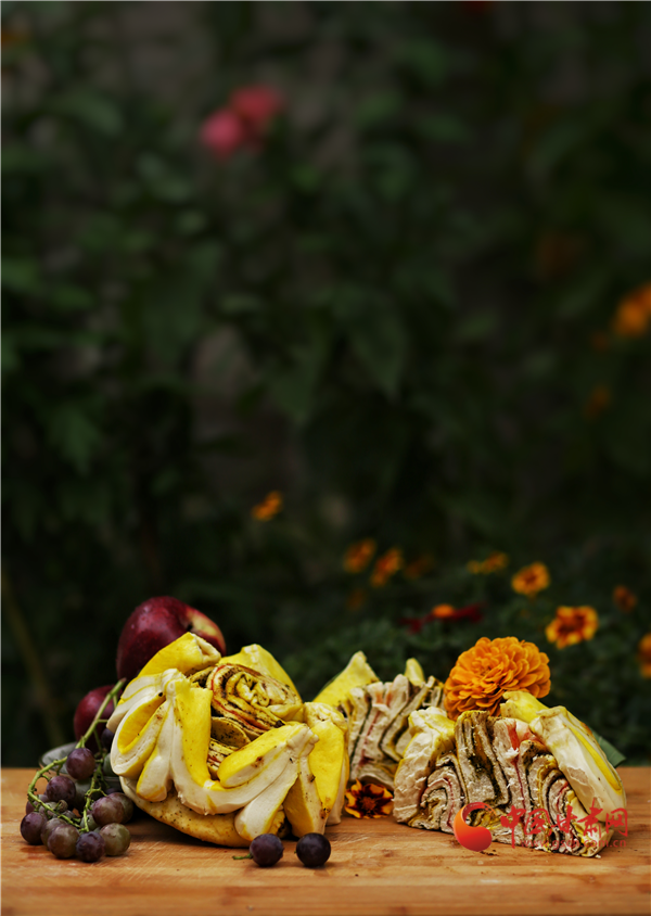 香豆、油酥、姜黃、紅曲、胡麻……最樸實(shí)的食材,最傳統(tǒng)的工藝,讓月餅在蒸汽中充分鼓脹,最終飽滿盛開。卷沿彎曲,狀似玫瑰。切開,內(nèi)里豐富,色彩斑斕,如同張掖丹霞,熠彩生輝,包羅萬(wàn)象。(本網(wǎng)記者 宋芳科 通訊員 張文)
