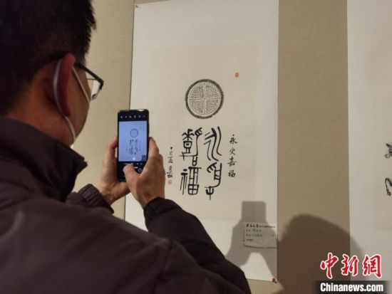 圖為觀展者用手機(jī)記錄傳拓技藝?!〈蘖?nbsp;攝