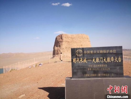 圖為位于甘肅酒泉市金塔縣境內的全國重點文物保護單位——大墩門大墩明長城烽燧。(資料圖) 馮志軍 攝