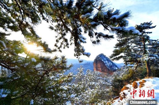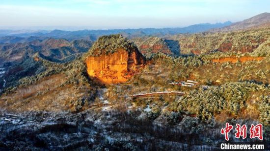 麥積山風(fēng)景區(qū)是中國南北方沉積地層在地表上層的分界線,又是黃河長江兩大流域的分水嶺,雪后景色地貌獨特。周文濤 攝