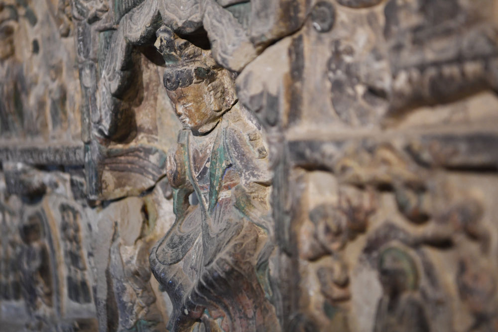 這是麥積山石窟第133窟內(nèi)的造像碑局部(6月9日攝)。新華社記者 陳斌 攝