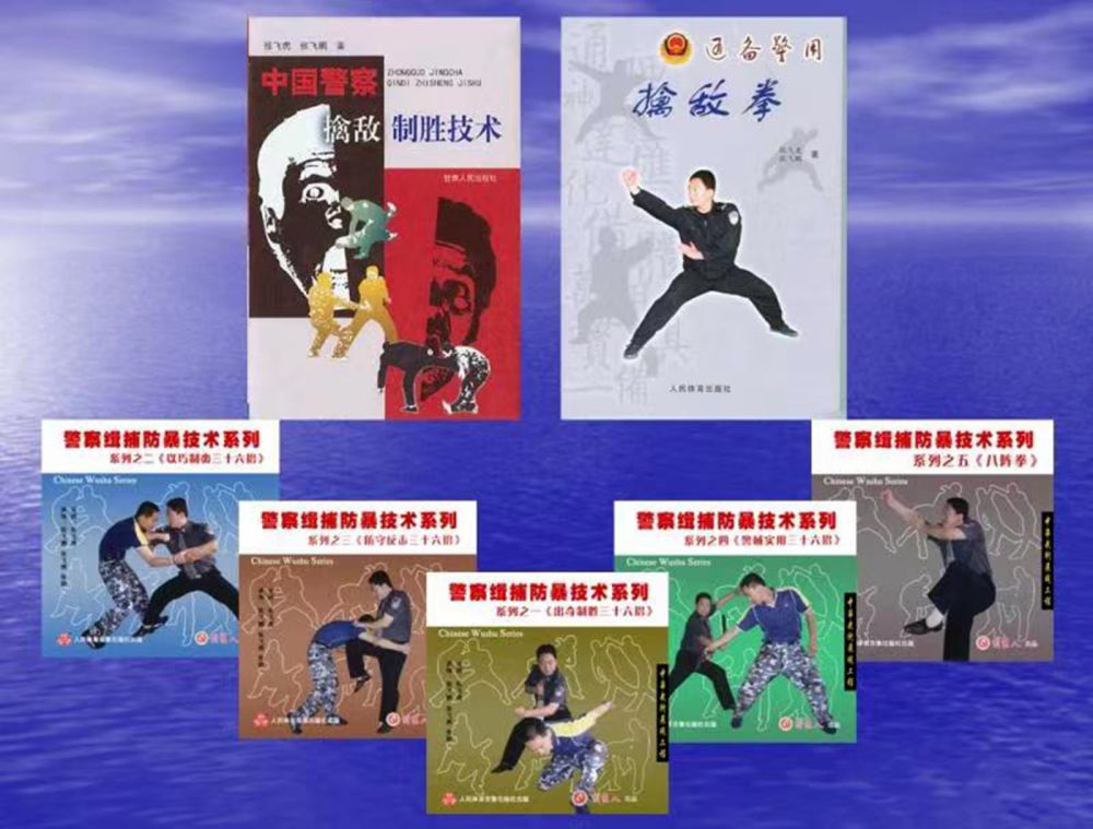 張飛虎在習(xí)武之余,學(xué)術(shù)上也一路精進(jìn),展現(xiàn)了他學(xué)文的天賦,他不但是警院教授,還曾是警院學(xué)報(bào)副主編,除了先后出版的4部學(xué)術(shù)專著外,還錄制了“警察緝捕防暴技術(shù)”系列教學(xué)光碟,在國(guó)內(nèi)外發(fā)行,并有一項(xiàng)科研成果申報(bào)為國(guó)家專利。一位武術(shù)名家,在學(xué)術(shù)上有如此驕人的成就,實(shí)屬不易。治學(xué)之余,張飛虎還分別在《甘肅公安》和《蘭州公安》雜志上創(chuàng)辦并主持《招招制敵》與《實(shí)戰(zhàn)練兵》欄目,解說并實(shí)戰(zhàn)演練制敵招法。專著《中國(guó)警察擒敵制勝技術(shù)》一書2010年被公安部評(píng)為“全國(guó)公安機(jī)關(guān)優(yōu)秀培訓(xùn)教材”,書中首次提出了“軍隊(duì)擒敵技術(shù)和警察擒敵技術(shù)相殊差別”的觀點(diǎn),并對(duì)擒敵技術(shù)的每一招法進(jìn)行了生理學(xué)、生物力學(xué)的分析,從而科學(xué)地將擒敵術(shù)上升到一個(gè)新的理論與實(shí)戰(zhàn)融通的高度。更為可貴的是,《中國(guó)警察制勝技術(shù)》將法律精神融入其中,使招法的運(yùn)用有了法律依據(jù),盡顯法制社會(huì)的時(shí)代精神,也與文明社會(huì)的要求不謀而合,將警察擒敵技術(shù)與實(shí)用法律無縫銜接。針對(duì)警察沿襲軍隊(duì)擒敵拳無主體身份特點(diǎn)之不足,創(chuàng)編了首套以警察擒敵技術(shù)為主體內(nèi)容的擒敵拳——《通備警用擒敵拳》,填補(bǔ)了公安機(jī)關(guān)無警用擒敵拳的空白。2021年,作為建黨100周年的獻(xiàn)禮,張飛虎與其摯友張勇先生聯(lián)袂出版《維穩(wěn)中國(guó)》,為國(guó)家反恐維穩(wěn)工作貢獻(xiàn)了綿薄之力。