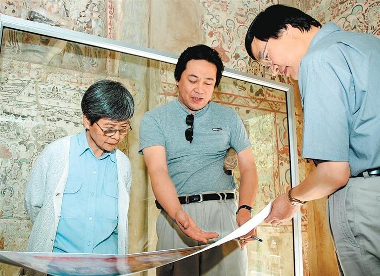 樊錦詩在莫高窟洞窟內(nèi)指導《敦煌石窟考古全集》的編寫工作。(資料圖)(本文圖片除署名外均由敦煌研究院提供)