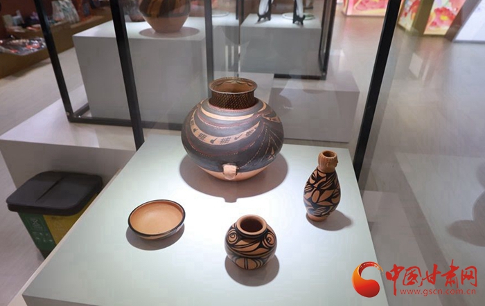 這批“大地灣彩陶”非遺共8件,由秦安縣康坡陶藝農(nóng)民專業(yè)合作社提供,無論是創(chuàng)意構思還是表現(xiàn)手法,都完美再現(xiàn)了5000多年前先民高超的造型能力和藝術水平,瓶身圖案的韻律節(jié)奏及對稱均衡的形式美充分體現(xiàn)了彩陶藝術作品的魅力,為進博會甘肅展臺增添了厚重的歷史人文氣息,一經(jīng)亮相,就吸引了進博會游客紛紛觀賞。