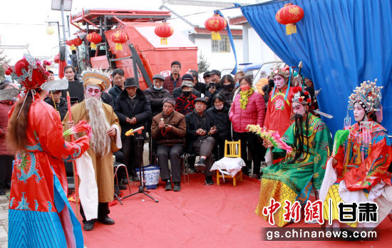 中新網(wǎng)甘肅新聞2月8日電 (朱玲)農(nóng)歷正月,走進華亭市西華鎮(zhèn)西塬村,山村隱掩處,遠遠聽聞古樸蒼勁的戲曲腔調(diào)傳來。村部院落里,村民或站或蹲,里三層外三層地將表演者圍了個水泄不通。