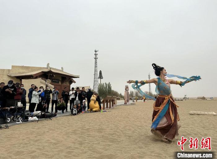 近年來,敦煌市委網(wǎng)信辦以“壁畫變裝秀”“飛天舞蹈短視頻”“漫說敦煌歷史”等形式,弘揚(yáng)敦煌文化。6月以來,內(nèi)地很多敦煌舞愛好者涌向敦煌,穿上以飛天服飾為代表的各種古裝,在絲綢之路旅游網(wǎng)紅“打卡地”鳴沙山月牙泉、玉門關(guān)、陽關(guān)等景區(qū)拍照、直播,各種不同的古裝服飾也為“大漠孤煙直”的絲路古道增添了無限色彩。