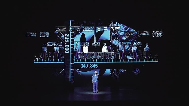 據(jù)了解,舞臺(tái)裝置上呈現(xiàn)出軍事工業(yè)的莊重感,如歌如畫(huà)般營(yíng)造出了核潛艇極限下潛步步驚心的緊張氛圍,同時(shí)也讓觀眾近距離地走近了英模的成長(zhǎng)歷程與內(nèi)心世界。