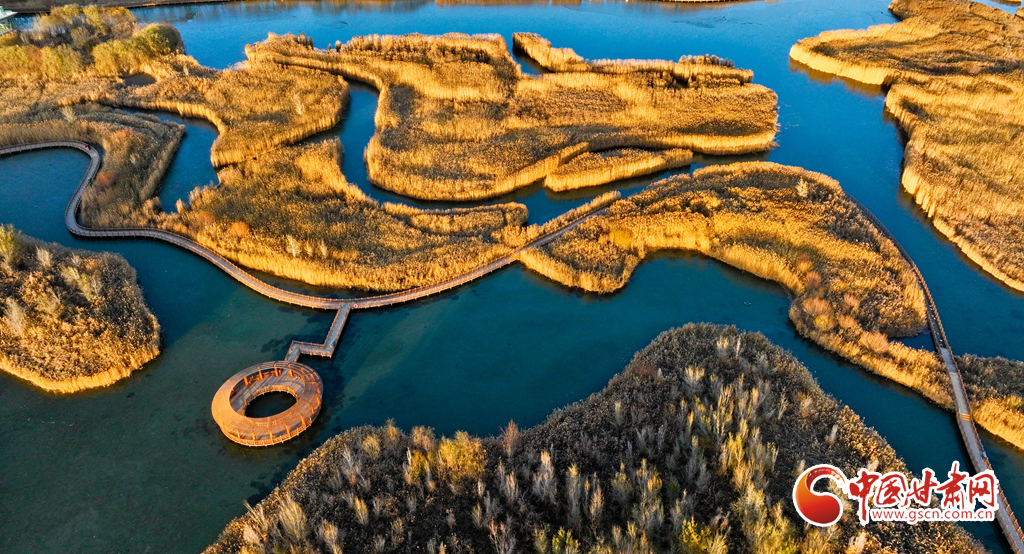 11月25日,在夕陽映照下的甘肅張掖黑河濕地國家級自然保護(hù)區(qū),金色繁茂的蘆葦長滿水面,碧水環(huán)繞其中,清風(fēng)吹過,綠波蕩漾,成為市民和游客心曠神怡的好去處。