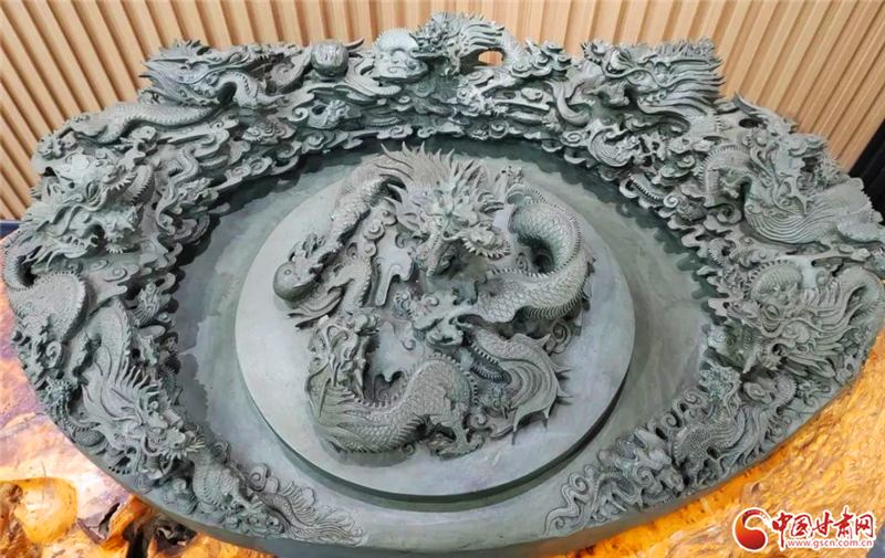 整整40年里,他帶著對(duì)洮硯文化的滿(mǎn)腔熱情,胸懷濃濃的家國(guó)之情,組織公司上百名精工巧匠,嘔心瀝血、精心制作了“中華復(fù)興”硯、“盛世中華龍”硯、“東方醒獅”硯、“錦繡中華”硯等各種象征偉大祖國(guó)繁榮昌盛、碩果累累的巨硯,分別在人民大會(huì)堂及全國(guó)多所重點(diǎn)院校落座展出。