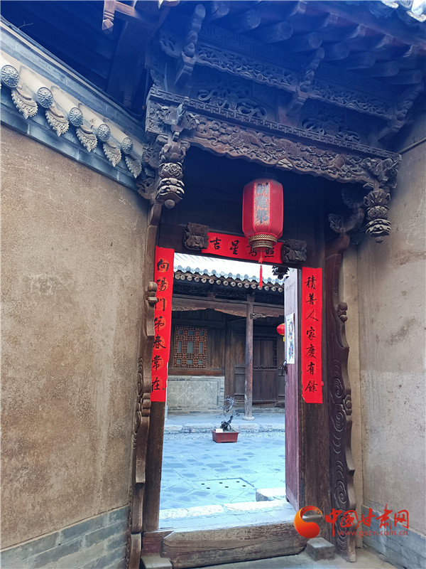 南宅子大門(mén)是一座五間大小的垂花黑漆懸山頂式建筑,門(mén)額上書(shū)明人手跡“副憲第”三字,大門(mén)當(dāng)心的牌坊式門(mén)樓,更是軒朗威儀,檐下雕板刻飾精美,浮雕透雕都有,雕出的云龍鳳凰、花草海水、朝陽(yáng)牡丹等吉祥圖案,托出古居氣象恢宏的美。