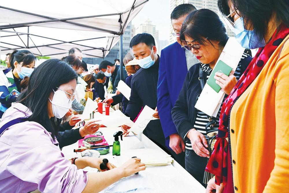 活動(dòng)現(xiàn)場(chǎng),甘肅省圖書(shū)館的工作人員帶領(lǐng)讀者體驗(yàn)傳拓之美。 新甘肅·甘肅經(jīng)濟(jì)日?qǐng)?bào)記者 瞿娟 攝