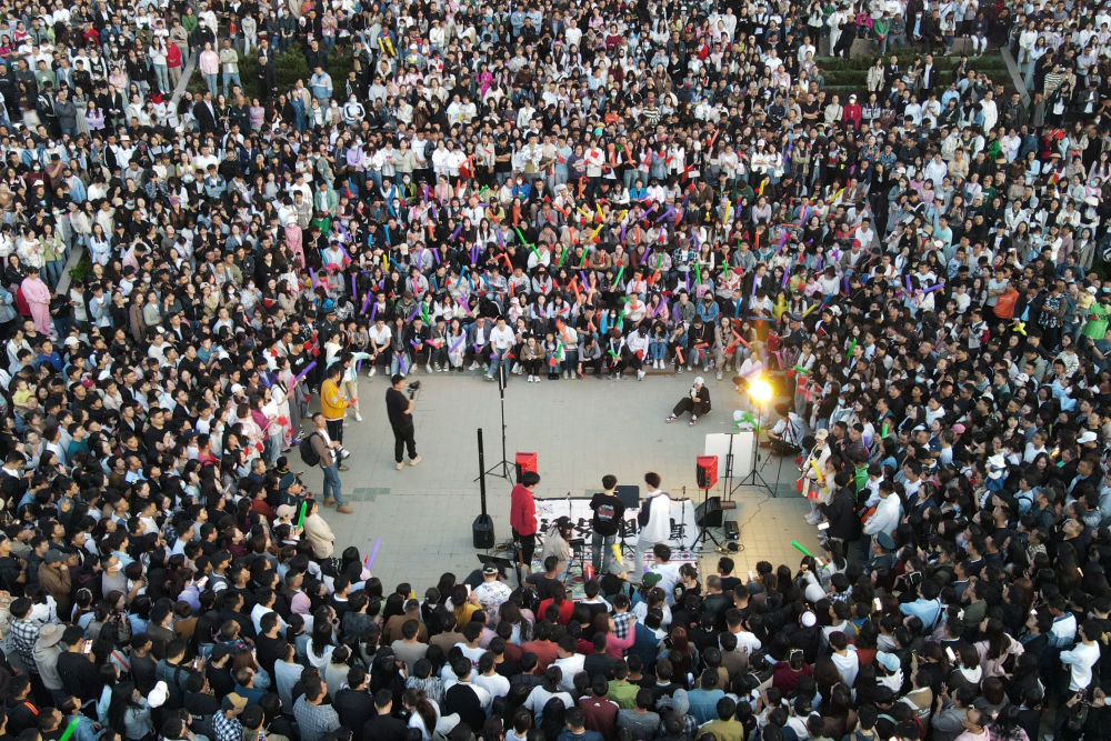 “最近在短視頻平臺(tái)上‘蘭州黃河大合唱’的話題很火,我們刷到后就趕過來了?,F(xiàn)場(chǎng)人山人海,氛圍感拉滿,有種露天現(xiàn)場(chǎng)酒吧的感覺。”趁著周末,來自蘭州城市學(xué)院的大學(xué)生陳佳儀和4名好友,相約打卡這個(gè)蘭州夜游新地標(biāo),感受黃河之濱的青春與活力。