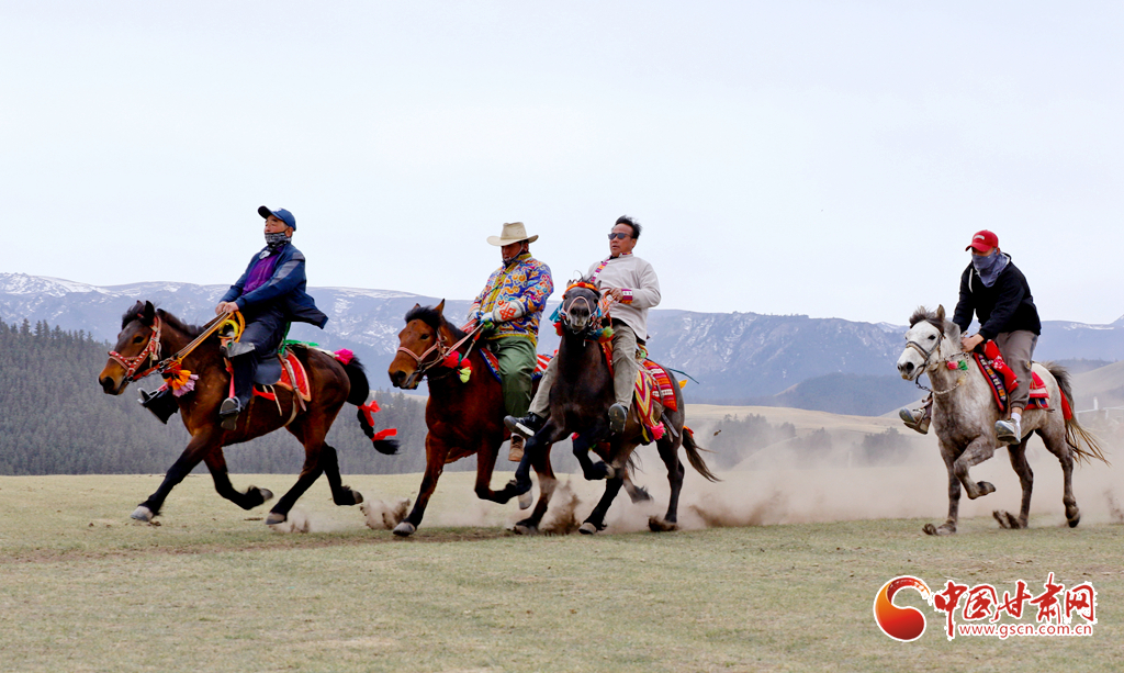 “五一”假期,甘肅省張掖市肅南裕固族自治縣康樂草原景區(qū)“民族大團(tuán)結(jié)”賽馬活動(dòng)拉開帷幕,騎手們在祁連山下的康樂草原上展開了民族走馬、速度賽馬角逐,吸引了眾多游客前往觀賞賽馬和領(lǐng)略雪山、森林、草原為一體的祁連山美麗景色。