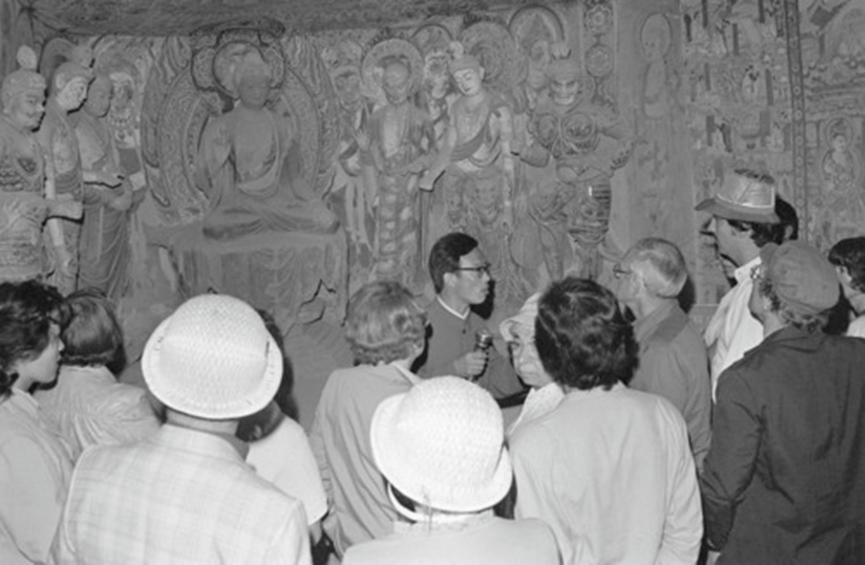 舉世聞名的文化寶庫和藝術(shù)明珠——敦煌莫高窟吸引了亞、歐、美三大洲的旅游者。新華社記者李生才攝(1986年5月18日發(fā))