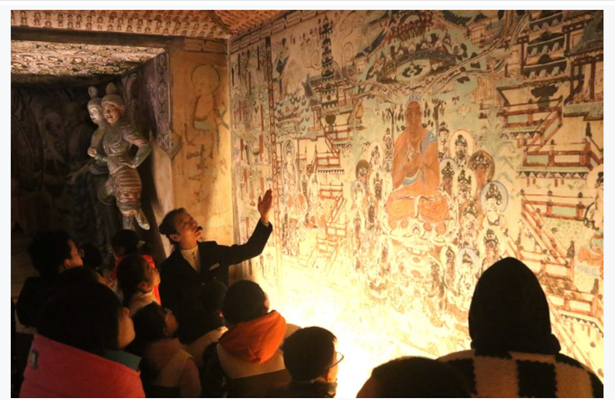 2024年,敦煌市依托當(dāng)?shù)刎S富的人文遺跡和自然景觀,大力發(fā)展文化研學(xué),建成莫高學(xué)堂、鳴沙書院等16個研學(xué)基地,推出壁畫臨摹、漢簡學(xué)堂等獨(dú)具敦煌特色的研學(xué)產(chǎn)品,讓游客和學(xué)生在參觀的同時進(jìn)一步體驗(yàn)敦煌文化的魅力。 據(jù)了解,敦煌市已推出冬春旅游優(yōu)惠政策,對大中小學(xué)生免市屬景區(qū)門票,莫高窟對研學(xué)團(tuán)隊(duì)開放洞窟由8個增至13個,并配備資深講解員講解。