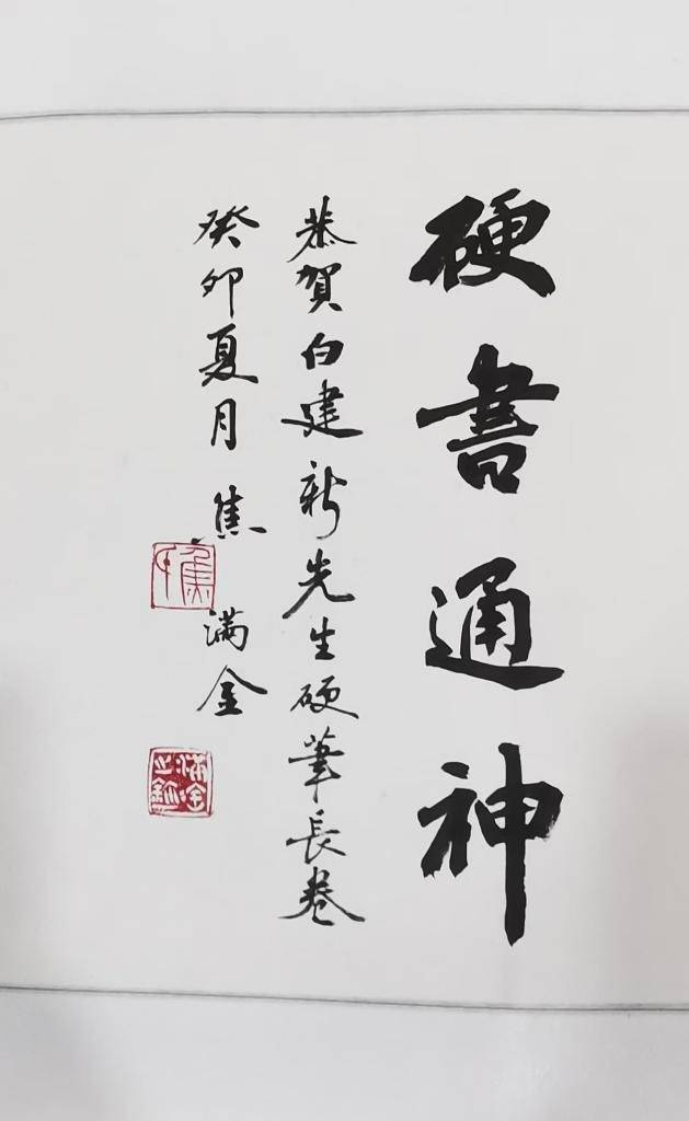 甘肅省硬筆書(shū)法家協(xié)會(huì)主席焦?jié)M金先生為該長(zhǎng)卷題詞:硬書(shū)通神