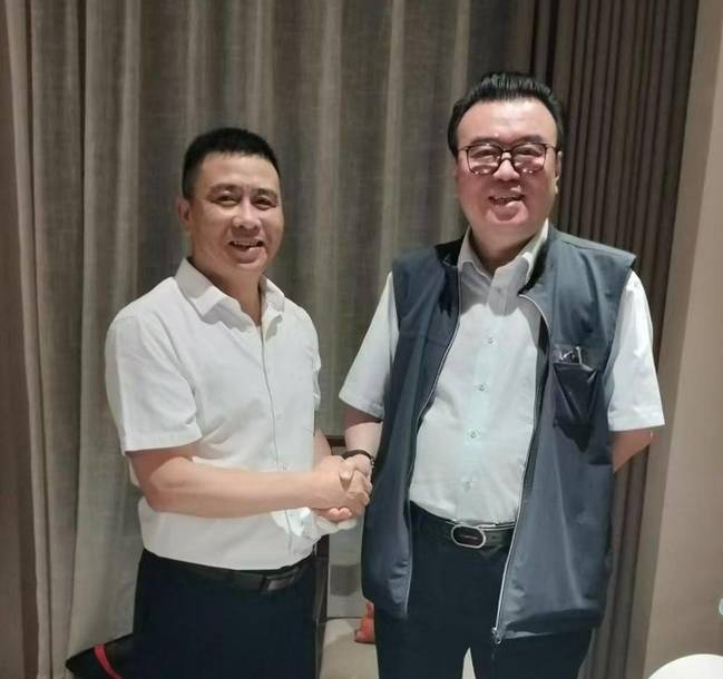中國(guó)硬筆書(shū)法協(xié)會(huì)主席張華慶(右)與白建新(左)合影