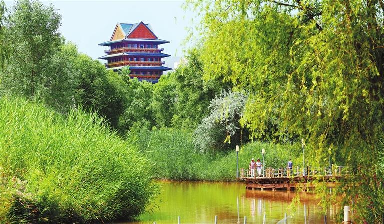 隨著黃河水位的變動,濕地四季景色各異。亭臺樓閣、小橋流水,漫步其間讓市民和游客領(lǐng)略到黃河濕地的獨(dú)特風(fēng)貌。