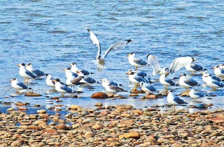 黃河蘭州段成群結(jié)隊(duì)的漁鷗在水面游弋。田蹊