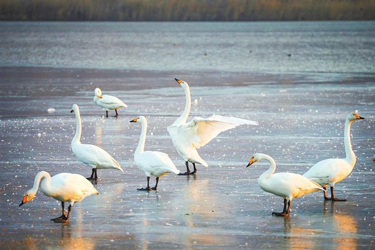 蘭州西固區(qū)達(dá)川鎮(zhèn)境內(nèi)三河口的天鵝。丁凱