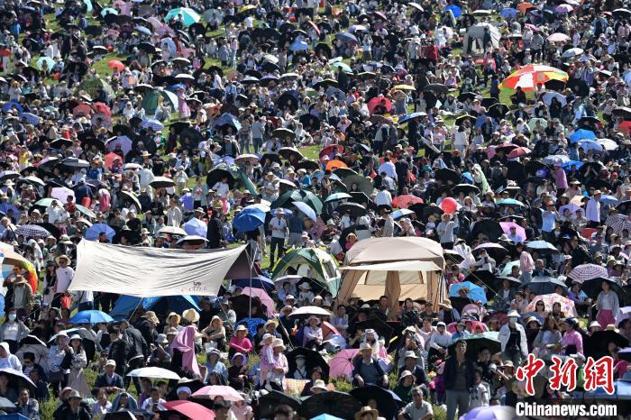 8月4日,民眾在當周草原浪山聚會。當日,第22屆九色甘南香巴拉旅游藝術節(jié)在甘肅省甘南藏族自治州當周草原開幕。人們身著節(jié)日盛裝載歌載舞、歡聚一堂,馬隊巡游、千人鍋莊舞等活動精彩上演。九色甘南香巴拉旅游藝術節(jié)既是民眾浪山聚會的節(jié)日盛會,也是展現發(fā)展成就、擴大對外開放的重要窗口,更是展示民俗文化、促進廣泛交往交流交融的有效載體。中新社記者 九美旦增 攝