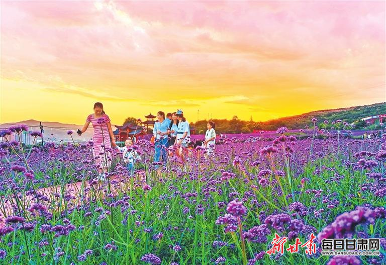 近日,清水縣花舞北山的馬鞭草進(jìn)入盛花期,在晚霞的映襯下,如一幅美麗的畫(huà)卷,吸引人們前來(lái)賞花游玩。新甘肅·甘肅日?qǐng)?bào)通訊員 雷金鋒