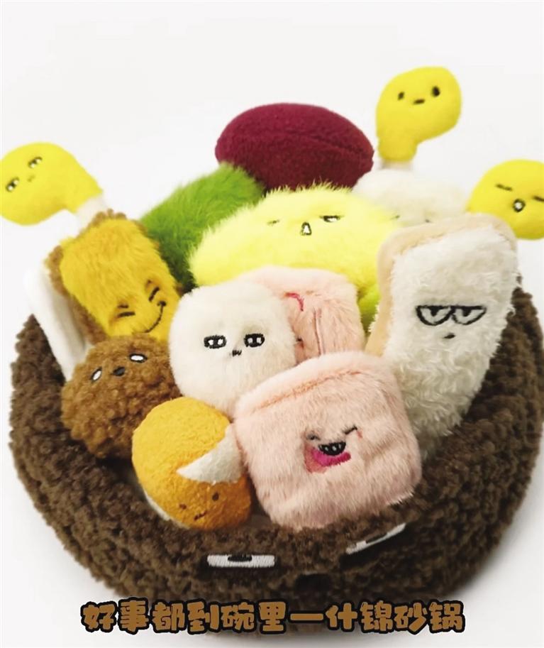 記者看到,“麻辣燙”和“砂鍋”毛絨玩具花束有多個(gè)單品,模擬了丸子、蟹排、年糕、香菇等菜品。而且每款都有自己的名字——嘻嘻西蘭花、香香香菇、黏黏年糕、哇哇菜、謝謝蟹排、玩去吧丸子??蓯塾腥さ拿q玩具再次走紅網(wǎng)絡(luò),成為不少“大朋友”的必入文創(chuàng)單品。連日來,這款單品引發(fā)近20萬人涌入天貓旗艦店搶購,“麻辣燙”幾度售罄。甘肅省博物館文創(chuàng)中心負(fù)責(zé)人崔又心介紹,“麻辣燙”火了之后,天貓店客服每天都會(huì)收到來自消費(fèi)者“求補(bǔ)貨”留言。