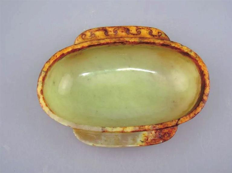 羽觴,多美妙風雅的名稱,它的基本形制是扁橢圓,弧形壁,淺腹平底,餅形足或高足,口緣兩側各有一個半月形耳或方形耳。這種形制始于春秋戰(zhàn)國,是由橢杯、舟等演變而來,盛行于秦漢至魏晉南北朝,唐代以后便很少見到。其材質有漆木、青銅、金、銀、玉、陶等,其中玉耳杯由諸侯王、列侯等身份地位比較高的人使用,漆耳杯使用者范圍較廣泛,上至帝王諸侯,下至一般貴族均可使用。