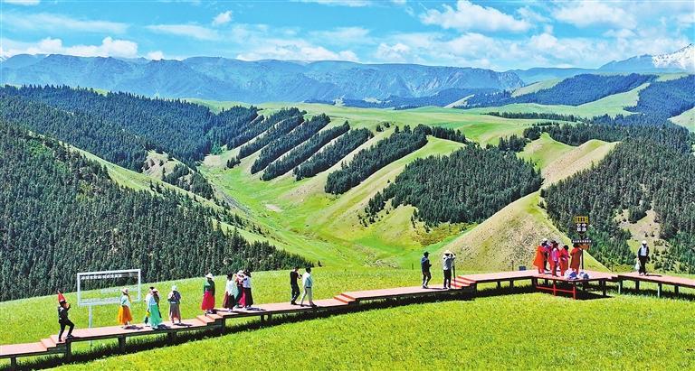 游客在肅南縣康樂草原領(lǐng)略祁連風光。 新甘肅·甘肅日報通訊員 王將