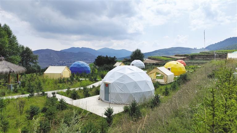 沿興隆山大道進(jìn)入滿目翠綠的原始森林,隨著彎曲的盤山公路走進(jìn)了哈班岔村時(shí),首先映入眼簾的便是層層遠(yuǎn)山間科技范十足的民宿太空艙和造型獨(dú)特的露營(yíng)帳篷,山坡上植被茂密,臨近山腳下的梯田色彩豐富,將一幅自然與人文相互映襯的鄉(xiāng)村畫(huà)卷展現(xiàn)在人們面前。