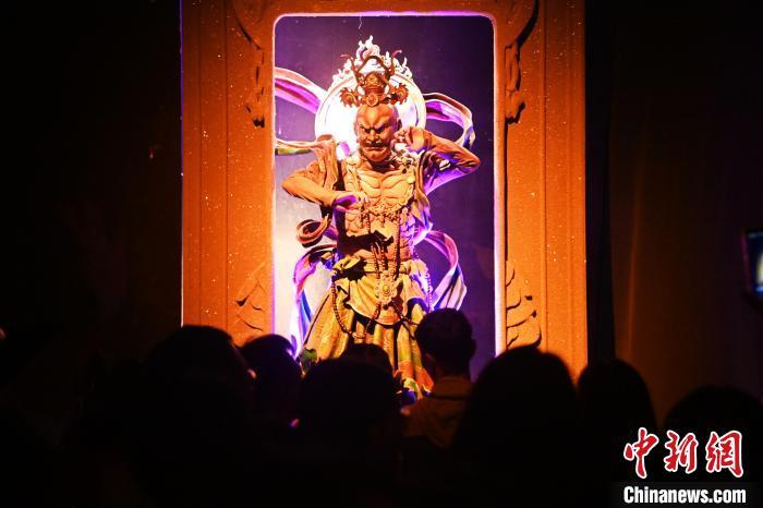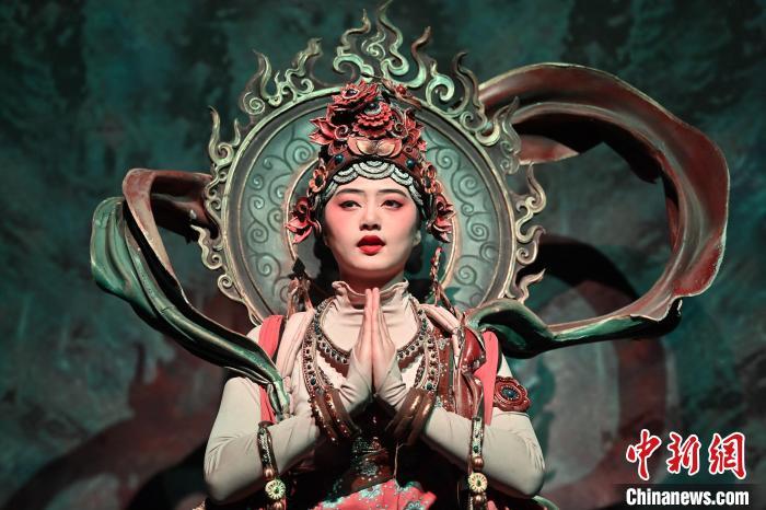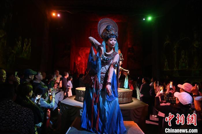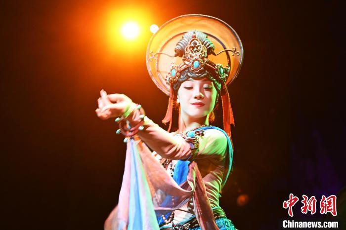 圖為演員在大型洞窟式沉浸體驗(yàn)劇《樂(lè)動(dòng)敦煌》中表演。九美旦增 攝
