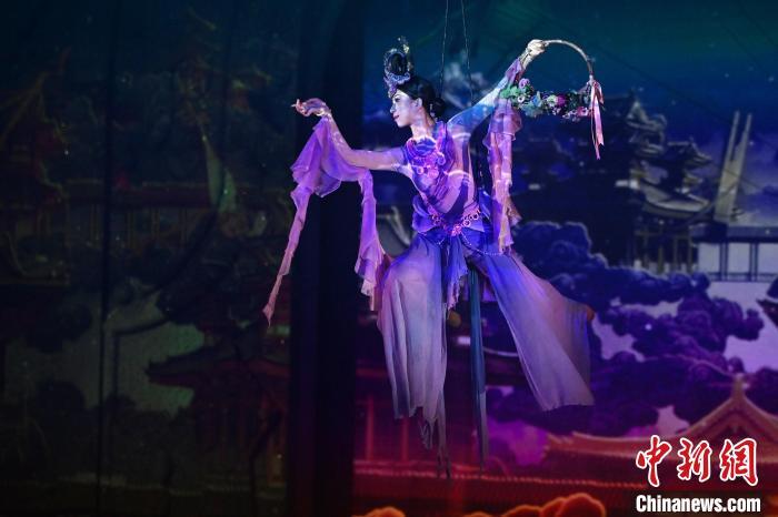 9月5日晚,甘肅敦煌旅游熱度不減,眾多游客觀看大型洞窟式沉浸體驗(yàn)劇《樂(lè)動(dòng)敦煌》。該劇溯源敦煌文化,借助對(duì)莫高窟壁畫(huà)、藏經(jīng)洞古籍進(jìn)行解讀,用全息投影、3D威亞等高科技手段,以全沉浸式的呈現(xiàn)方式,演繹西域少年追尋藝術(shù)的傳奇故事。劇中運(yùn)用了琵琶、排簫、阮等民族樂(lè)器及仿制敦煌古樂(lè)器的音色,通過(guò)胡旋舞、腰鼓舞、琵琶舞等典型舞蹈,展現(xiàn)了敦煌壁畫(huà)中的樂(lè)舞盛景,全面展現(xiàn)敦煌傳承千年的樂(lè)舞文化魅力。九美旦增 攝