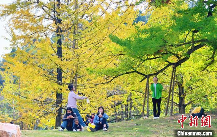 中新網(wǎng)蘭州10月28日電(高展)“霜降”過后銀杏黃。秋陽映照下,甘肅隴南市徽縣嘉陵鎮(zhèn)田河村宛如披上絢麗新裝,詩意夢幻。此地四周青山環(huán)抱,嘉陵江如靈動絲帶蜿蜒流淌,水豐土腴、氣候溫潤,為銀杏營造絕佳生長環(huán)境?;湛h委副書記、縣長王福全稱,銀杏,不僅承載著千年的歷史沉淀,更以其獨特的風(fēng)姿和韻味,成為徽縣一張亮麗的名片。