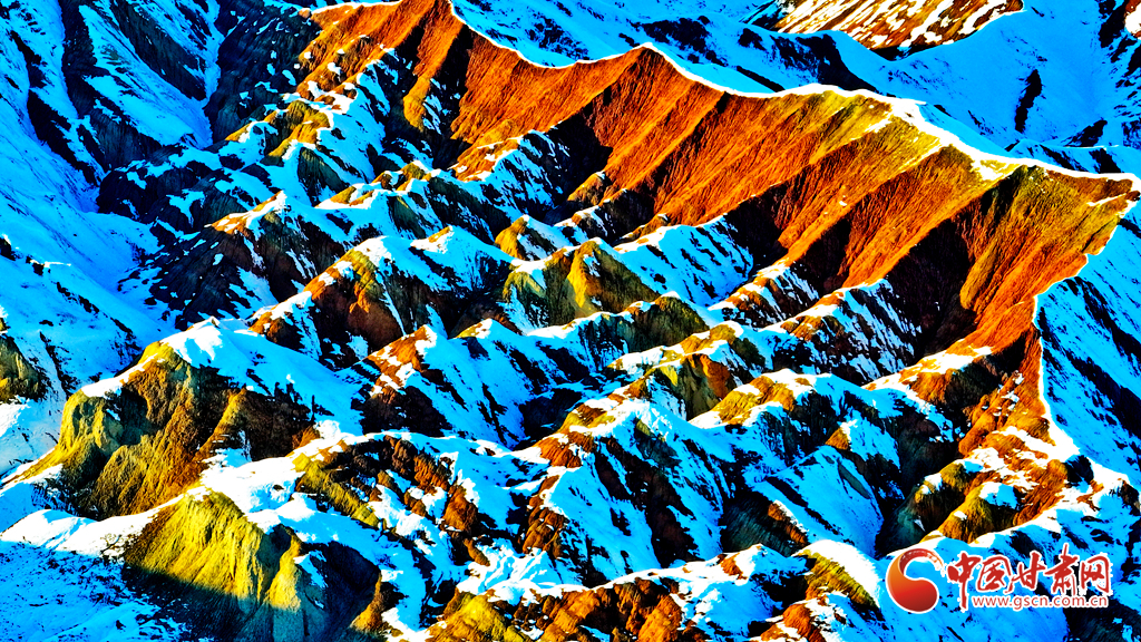 11月25日,雪后初晴,夕陽(yáng)溫柔地斜灑在七彩丹霞之上。潔白的雪花輕輕覆蓋在這片斑斕絢麗的巖層上,這里仿佛是人間仙境,展現(xiàn)出一幅令人嘆為觀止的絕美畫(huà)卷,讓人沉醉不已。