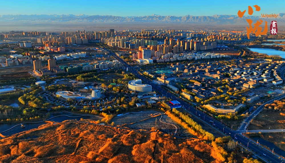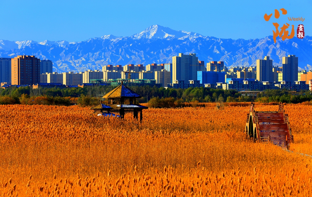 田園親昵,群樓挺拔,巍峨祁連。濕地公園里每一根蘆葦都像是一個靈動的音符,在寒風(fēng)的指揮下,奏響了一曲壯麗的冬季交響樂。