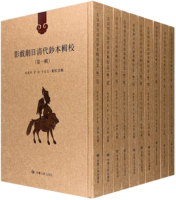 《影戲劇目清代鈔本輯校(第一輯)》(以下簡稱《影戲》),精裝全10冊,繁體豎排,260余萬字,2019年11月由甘肅人民出版社出版發(fā)行。該書為2018年國家古籍整理出版專項經(jīng)費立項資助項目,由蘭州大學文學院退休教師趙建新教授、青年教師管弦共同點校輯錄并編纂出版。書中共收錄清代甘肅皮影戲傳世劇目60種,其中不乏甘肅影戲獨有的珍貴劇目,是對甘肅皮影戲劇目文獻的一次較大規(guī)模的搜集整理,也是歷年來對戲曲文獻進行搜集整理的著作中收錄隴影劇目最多的一部,在中國戲曲研究領域具有重要的藝術價值、版本價值和學術意義。