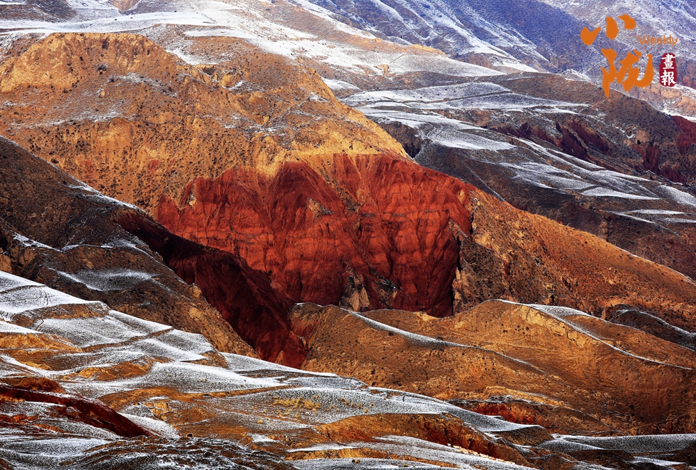 近日,一場(chǎng)春雪悄然飄落。山間、鄉(xiāng)村和城市像似披上薄薄的輕紗,更加詩(shī)意盎然。本就有著獨(dú)特韻味的山巒,在白雪的映襯下,層理交錯(cuò)、色彩斑斕,顯得格外艷麗多彩。