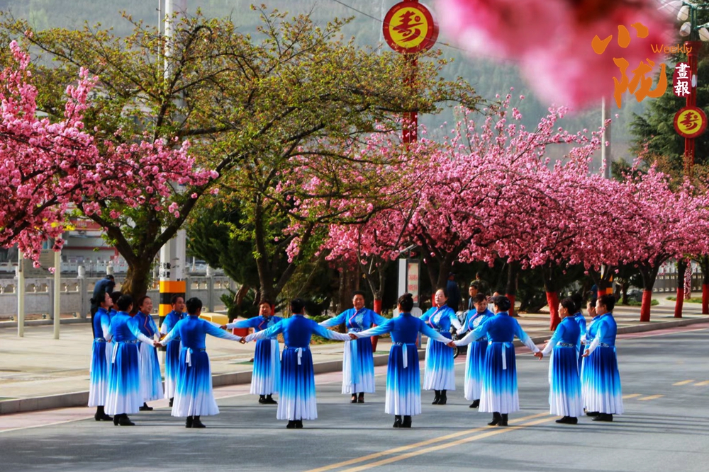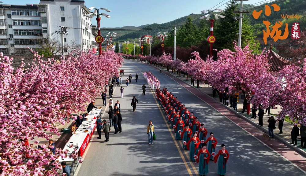 櫻花大道上,來自縣內外的旗袍、漢服愛好者,或款步前行、或載歌載舞,古風華服與粉色的櫻花交相輝映,為這座小城增添了一份獨特的溫婉與詩意。