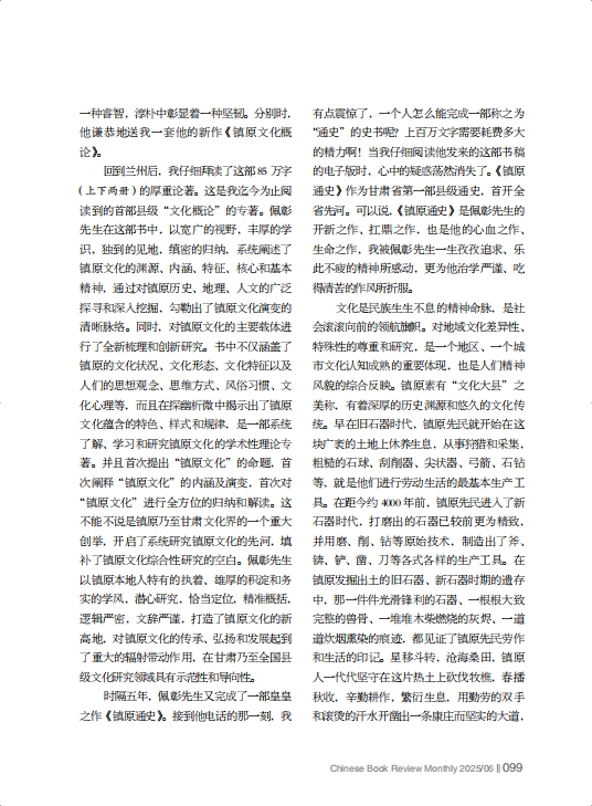 喜聞佩彰先生嘔心瀝血的第二部學(xué)術(shù)專著——《鎮(zhèn)原通史》完稿付梓,即將由中國文史出版社出版,我既為佩彰先生筆耕不輟、潛心研究本土文化的頑強毅力而欽佩,也為家鄉(xiāng)能有如此一部賡續(xù)歷史、連接未來的開山之作而欣慰。