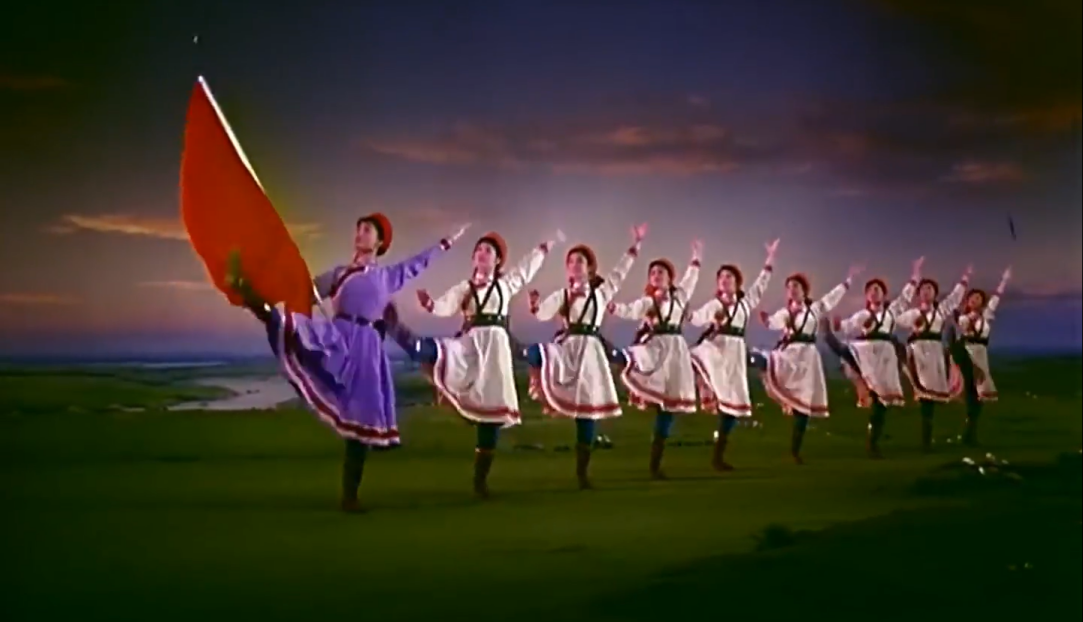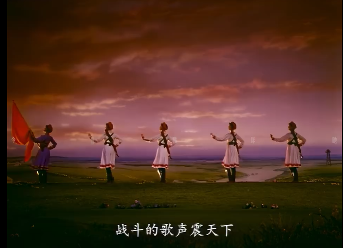 今天,當(dāng)我們談?wù)摗恫菰癖窌r,很大程度上是在談?wù)摗栋倩幤G》中的《草原女民兵》。電影不僅保存了這部舞蹈,更在某種意義上重新定義了它。那些通過鏡頭精心構(gòu)建的畫面,那些經(jīng)過剪輯強(qiáng)化了的節(jié)奏,那些通過混音豐富了的聲音,共同塑造了后世對這部作品的集體認(rèn)知與審美想象。