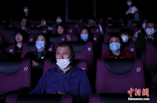 資料圖:1月23日,影迷在電影院內(nèi)戴口罩觀影。
