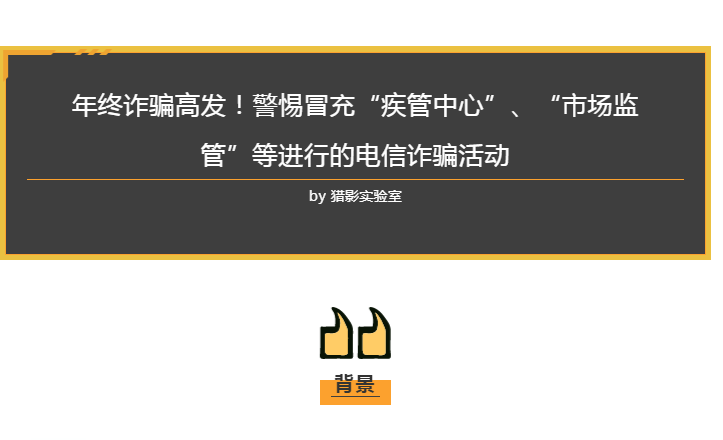 原標(biāo)題:年終詐騙高發(fā)!警惕冒充“疾管中心”“市場監(jiān)管”等進(jìn)行的電信詐騙活動