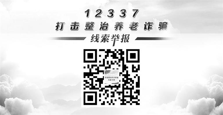 為廣泛接收群眾舉報線索,嚴厲打擊假借養(yǎng)老之名實施詐騙的違法犯罪行為,依法保護老年人合法權(quán)益,中央政法委在12337智能化舉報平臺開通了“打擊整治養(yǎng)老詐騙”舉報通道,群眾可通過掃描右側(cè)二維碼,登錄12337智能化舉報平臺反映問題。同時,還可通過撥打110報警電話等渠道,反映涉及養(yǎng)老詐騙違法犯罪等相關(guān)問題線索。