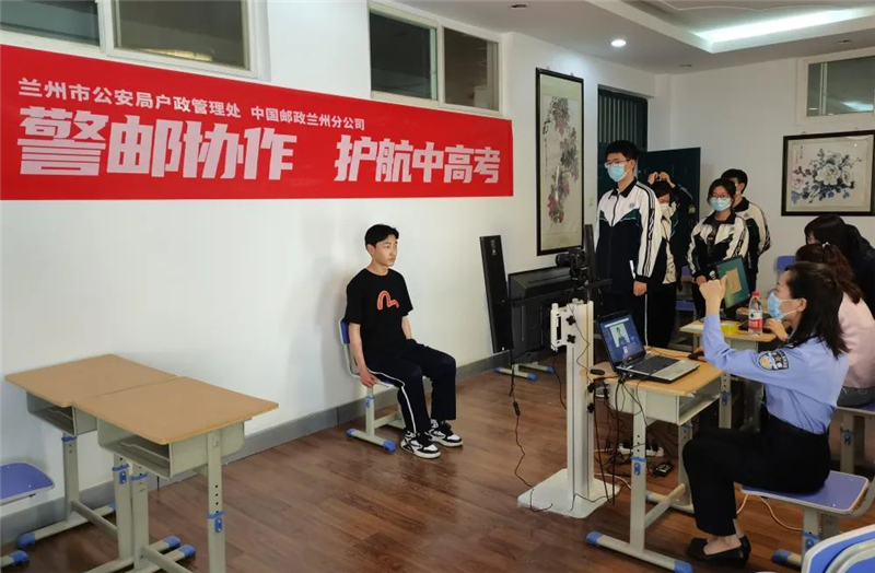 為了最大限度節(jié)省莘莘學(xué)子們緊張的復(fù)習(xí)時(shí)間,5月19日至20日,蘭州市公安局戶政管理處聯(lián)合中國(guó)郵政蘭州分公司,攜手七里河分局、七里河分局小西湖派出所及城關(guān)分局酒泉路派出所,市、區(qū)、派出所三級(jí)聯(lián)動(dòng),一起走進(jìn)蘭州西北中學(xué)與蘭州一中,將辦證窗口前移至校園,通過(guò)現(xiàn)場(chǎng)拍攝照片、離線采集指紋等方法,為即將參加高考的學(xué)生們提供“足不出校”即可辦理居民身份證的便捷服務(wù),將“服務(wù)群眾零距離”的服務(wù)承諾落到實(shí)處。
