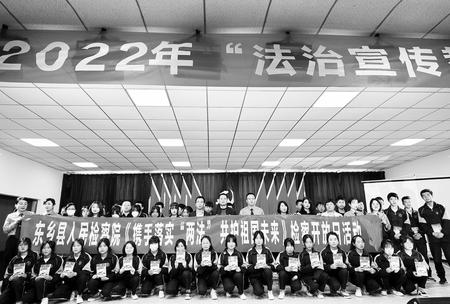 東鄉(xiāng)縣檢察院和民族中學共同舉辦“攜手落實‘兩法’共護祖國未來”檢察開放日宣講活動(2022年5月31日拍攝)?!      |鄉(xiāng)縣檢察院供圖