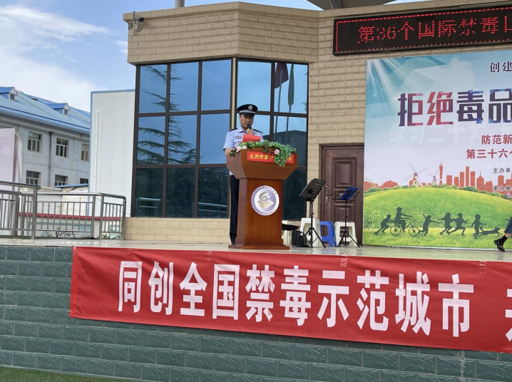 活動(dòng)以化工街派出所教導(dǎo)張華鵬向廣大師生、參與活動(dòng)人員領(lǐng)誓拉開帷幕,宣言鏗鏘有力,承諾擲地有聲,一句句誓言,道出了大家對(duì)拒絕毒品、遠(yuǎn)離毒品的決心。西柳溝街道黨工委副書記袁得琴講話中對(duì)全體到場人員作出倡議,希望大家從自身做起積極加入到全社會(huì)禁毒宣傳志愿者隊(duì)伍中,營造“禁毒斗陣、人人參與”的良好社會(huì)氛圍。
