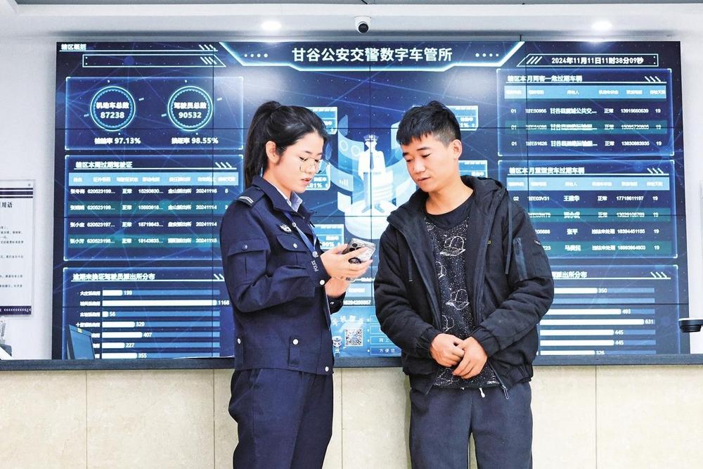 “通過大數(shù)據(jù)賦能讓‘數(shù)字車管所’和傳統(tǒng)車管所同頻共振,大大提高了工作效率。”甘谷縣公安局交警大隊(duì)車管所所長(zhǎng)王粉荷說道。