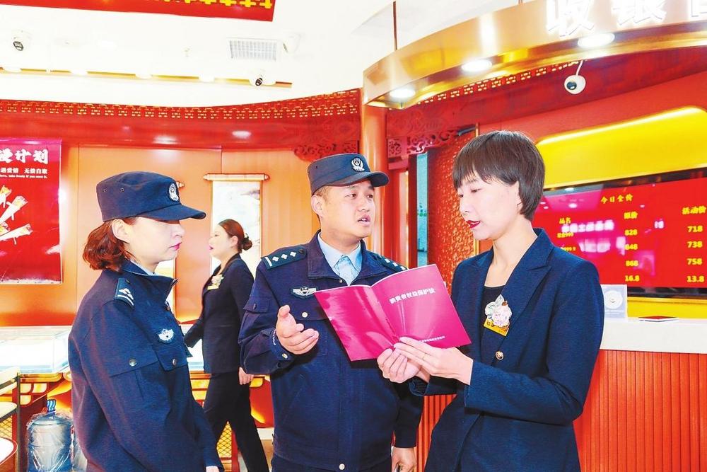3月14日,蘭州市公安局七里河分局組織多個(gè)派出所民輔警走進(jìn)商超、餐飲、副食品店等營(yíng)業(yè)場(chǎng)所,開展“3·15”消費(fèi)者權(quán)益日普法宣傳和專項(xiàng)檢查,倡導(dǎo)商家誠實(shí)守信合法經(jīng)營(yíng),為消費(fèi)者營(yíng)造安全、放心的消費(fèi)環(huán)境。 新甘肅·甘肅法治報(bào)記者張瑞軍攝