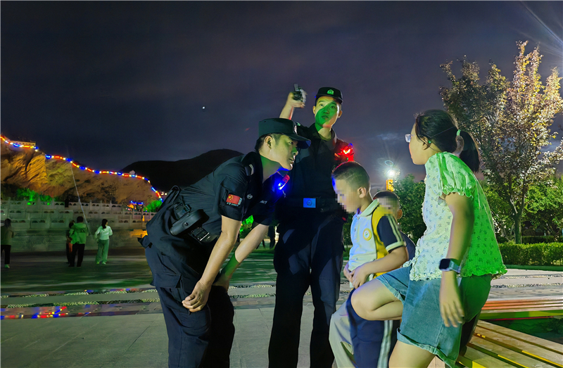 “小朋友,天黑了要注意安全,不要靠近湖邊。”特巡警大隊(duì)將公園廣場(chǎng)等群眾休閑聚集區(qū)域作為巡邏防控的重點(diǎn),民輔警在巡邏過(guò)程中一邊提醒玩耍的孩童注意安全,一邊向周邊群眾了解治安情況,同時(shí)主動(dòng)詢(xún)問(wèn)跳廣場(chǎng)舞的群眾是否存在噪音擾民等問(wèn)題,及時(shí)化解潛在矛盾糾紛。“有你們巡邏,我們帶孩子出來(lái)玩都感到很安心!”在公園散步的群眾紛紛表示。